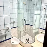 Das Apartment verfügt über ein Badezimmer mit einem Haartrockner und Badelaken.